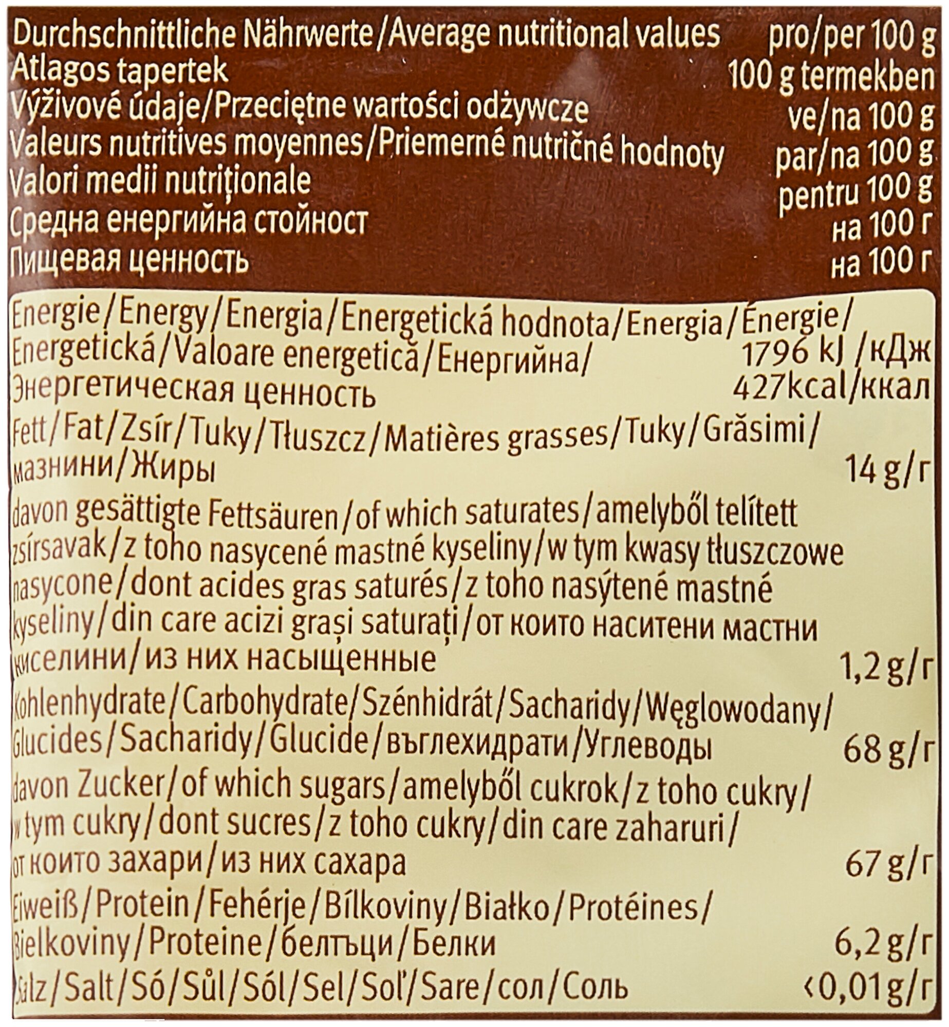| Состав | сахар, миндаль 26%, инвертный сахарный сироп, сироп глюкозы, обезжиренный какао порошок, ферментный препарат микробного происхождения инвертаза. может содержать следы других орехов, молочных ингредиентов и сои. |