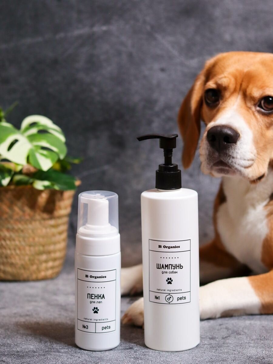 Шампунь с хлоргексидином, экстрактом алоэ вера и листьев крапивы, растительным глицерином, биотином и аллантоином подходит для всех типов шерсти любых пород собак. Шампунь бережно очищает и не сушит кожу животного, увлажняет, защищает и облегчает расчесывание, усиливает блеск, обладает антибактериальным действием, поддерживает естественный баланс увлажнения и естественный уровень рН 6,5, подходящий для вашего питомца. Растительный глицерин усиливает природный барьер и успокаивает кожу. Биотин и аллантоин улучшают состояние шерсти, предотвращают выпадение и усиливают ее рост. Подходит для ежедневного применения. Шампунь густой, не растекается, имеет плотную пену и приятный аромат для девочек по мотивам парфюма Lancome - La Vie Est Belle и для мальчиков по мотивам парфюма Tom Ford - Tobacco Vanille, который остается на коже и шерсти животного долгое время. Шампунь разлит в удобный флакон с дозатором, который позволяет контролировать его количество.