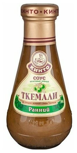 Соус Кинто ткемали ранний фруктовый 300г делается на основе пюре из зеленой сливы с добавлением чеснока, свежей зелени укропа и кинзы, молотых семян кориандра. Его характерный кисло-сладкий вкус и аромат сделают любое блюдо истинно кавказским. Рекомендуеся подавать с курицей (отварной или жареной), рыбой, мясом, молодым картофелем и печеными овощами. Благодаря своей освежающей кислинке делает жирную баранину и свинину легче и пикантнее. Продукт не содержит красителей, консервантов, ароматизаторов и других искусственных добавок.