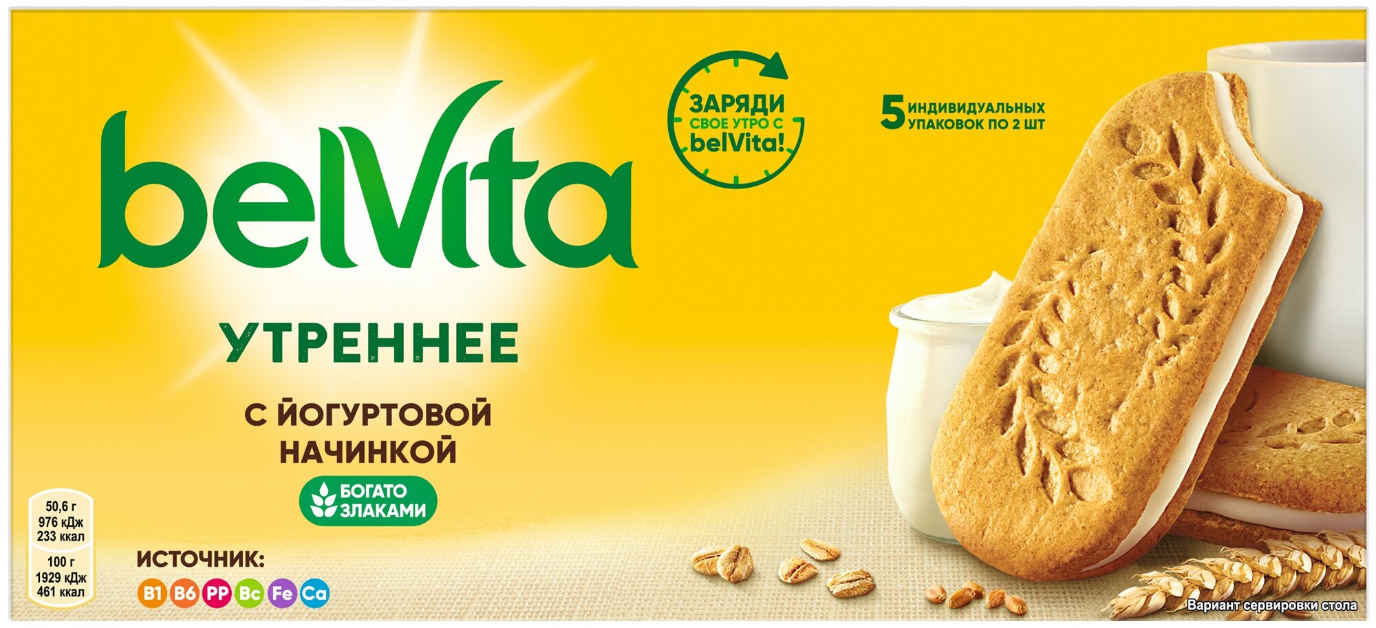 Печенье Belvita Утреннее со злаками и йогуртовой начинкой 253г Мондэлис Русь