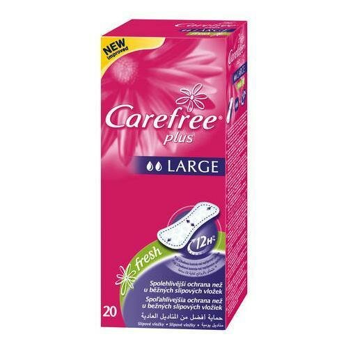 Женские прокладки Carefree plus large fresh ежедневные 20шт, увеличенные по длине и ширине, подарят вам ощущение чистоты и свежести, которое продлится целый день! Суперабсорбирующий слой способен быстрее впитывать выделения и защитить от появления запаха до 12 часов. Особый материал и мягкая воздухопроницаемая поверхность позволяют коже дышать, нижний липкий слой надежно фиксирует гигиеническую салфетку на белье. Гибкая форма максимально точно повторяет изгибы тела, что обеспечивает дополнительный комфорт во время движения. Продукт имеет легкий освежающий аромат и протестирован дерматологами. Размер одной прокладки 17.8*7.5см, толщина 2.4мм.
