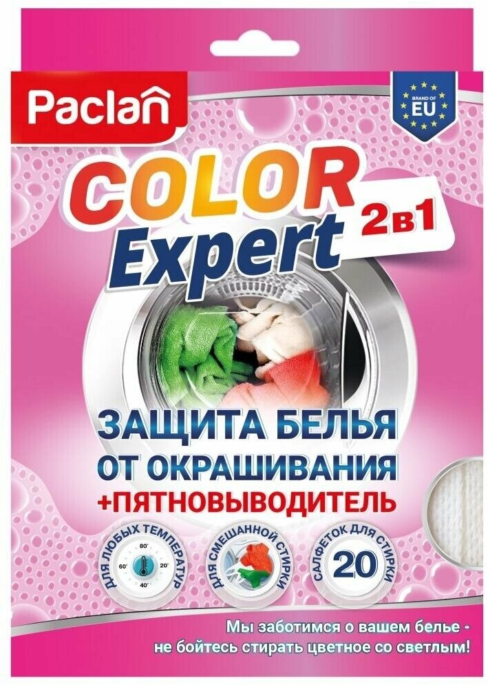 Салфетки для белья Paclan Color Expert 2в1 20шт CeDo