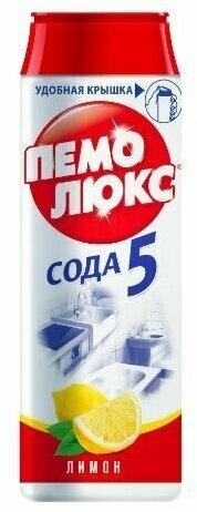 Описание товара:Чистящий порошок Пемолюкс "Сода 5"обеспечивает 5 слагаемых эффективной и безопасной уборки: Эффективность против жира и въевшейся грязи. Универсальное использование по всему дому Бережное очищение разнообразных поверхностей. Безопасное средство - без агрессивных химикатов. Аромат чистоты и свежести. Пемолюкс "Сода 5": Бескомпромиссная Чистота! Мощная формула Пемолюкс "Сода 5" с содой и мягким абразивом не содержит опасных химикатов и подходит для чистки керамических, эмалированных, металлических и других твердых поверхностей на кухне, в ванной комнате и в прочих помещениях. С осторожностью использовать на полированных и пластиковых поверхностях.Состав товара:<5% амфотерные ПАВ, отдушка (в т.ч. лимонен); природный молотый мрамор, сода, сульфат натрия, краситель.Меры предосторожности:Беречь от детей! При попадании в глаза промыть большим количеством воды. Хранить в сухом месте. Температурный режим хранения не ограничен. По истечении срока годности утилизировать как бытовые отходы.Способ применения:Нанесите на влажную поверхность, потрите и смойте водой.