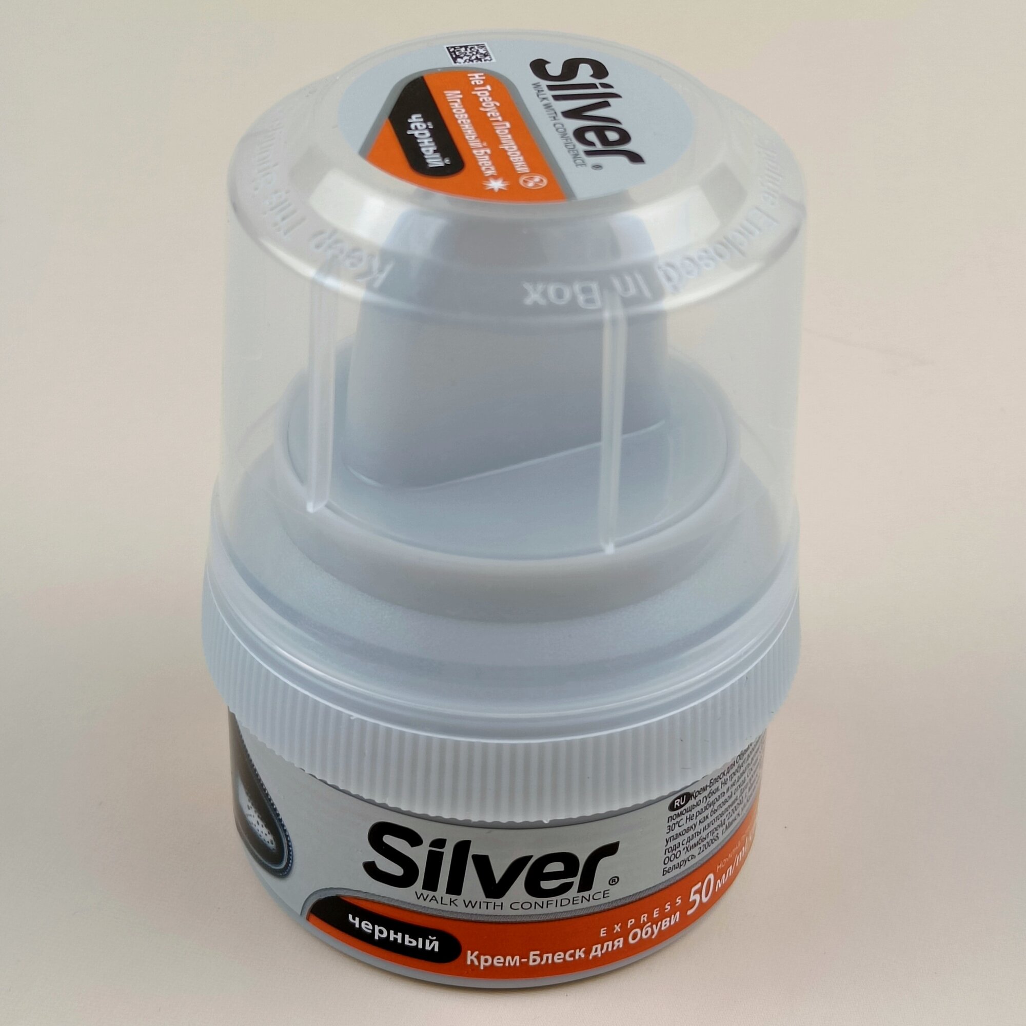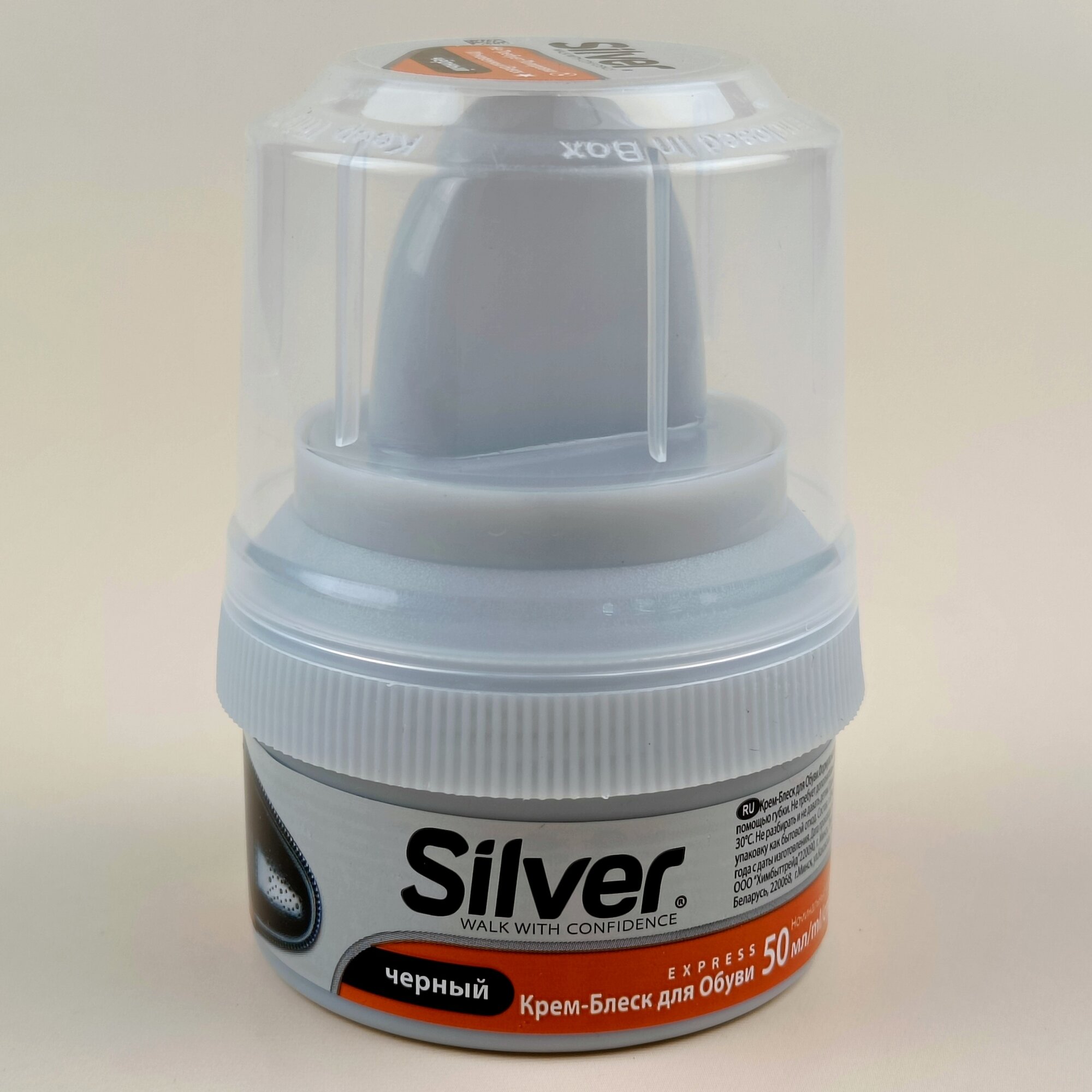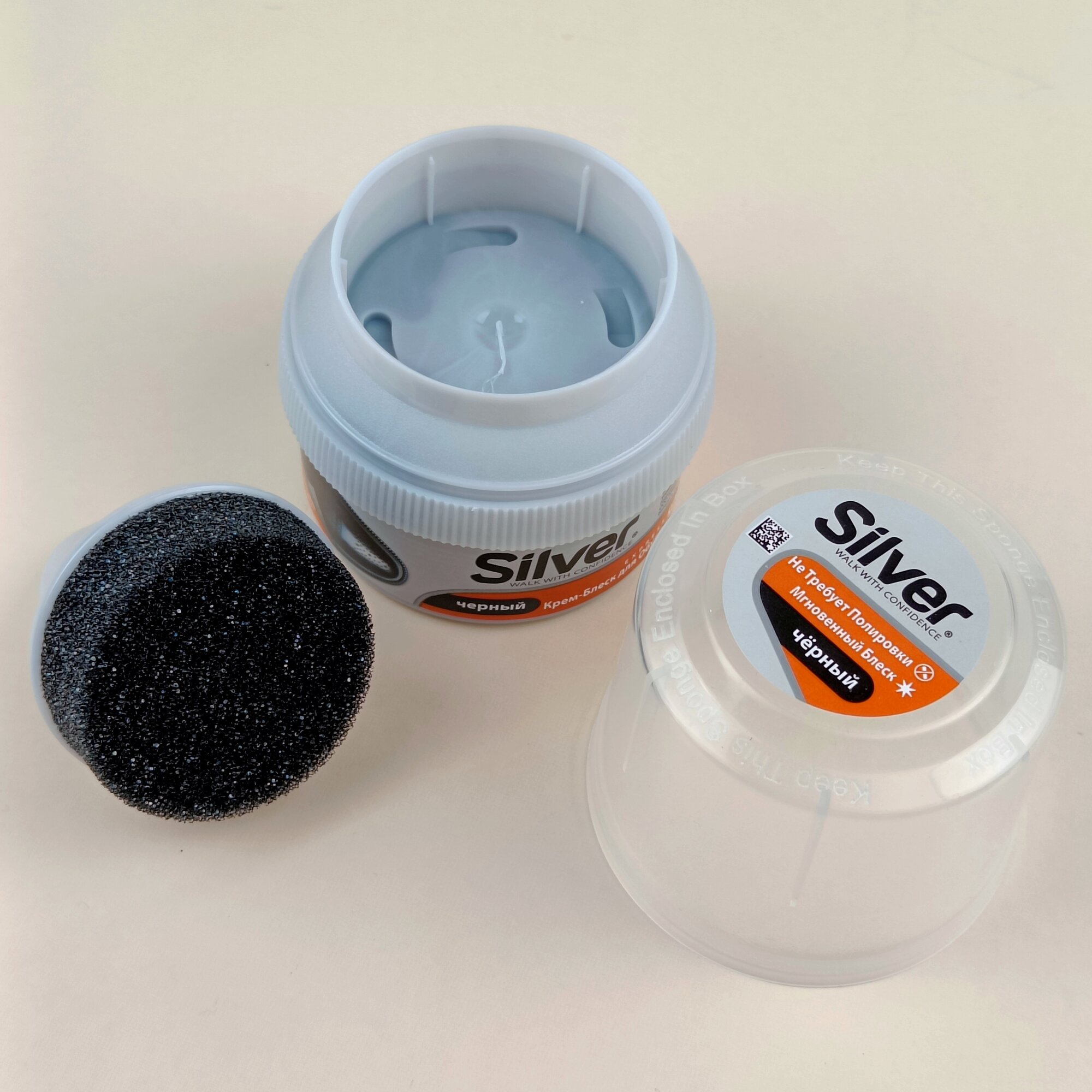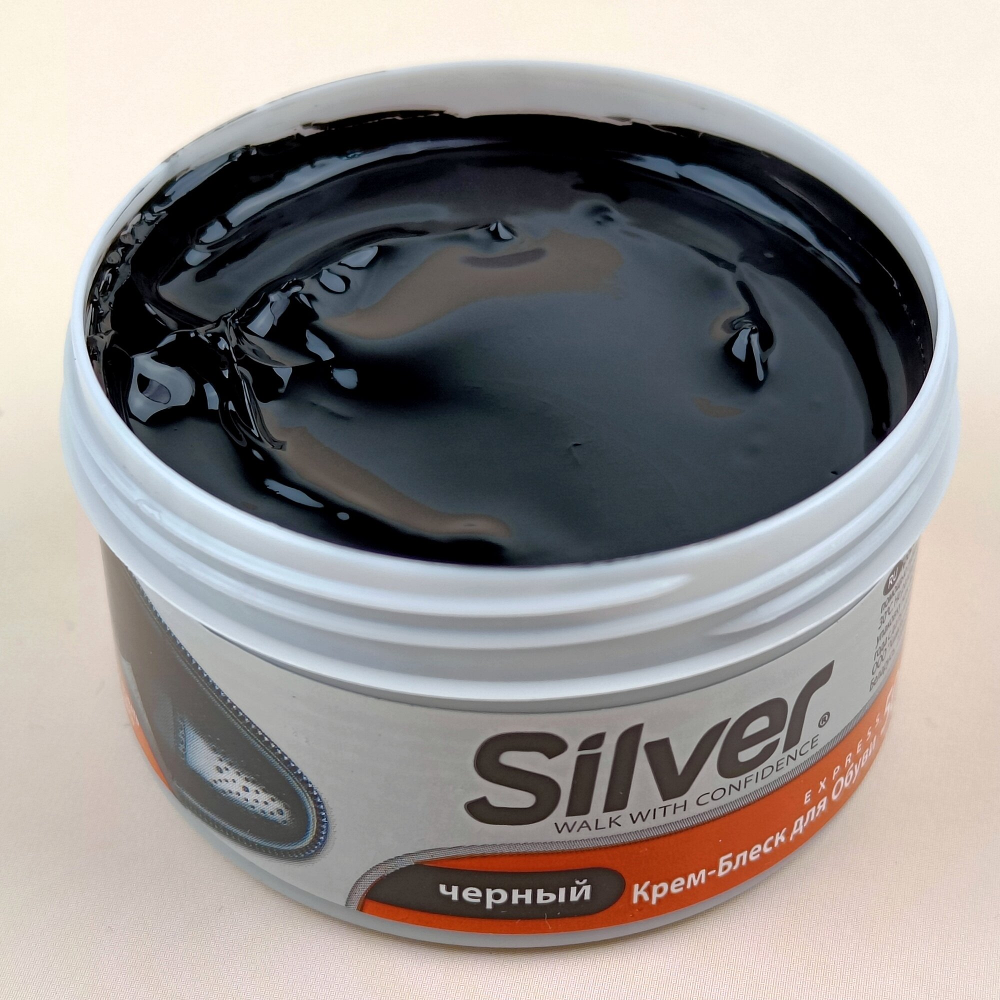 Данный крем Сильвер приобрела в магазине Порядок неделю назад. Крем хорошего качества, плотный по текстуре, жирный, наносится легко, экономно. Цвет чёрный. Пользоваться удобно, губка далеко от пальцев и руки не пачкаются. Обувь блестит как новая. Рекомендую. Это хороший товар.