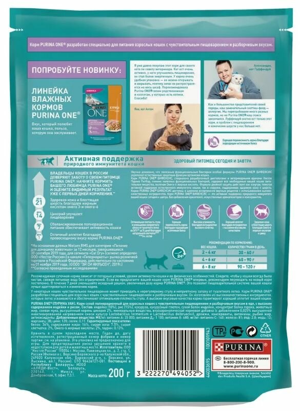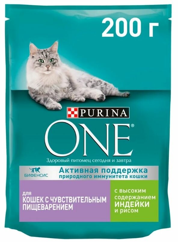 Purina One корм для взрослых кошек с чувствительным пищеварением c индейкой понравился моему коту. Корм полноценный/полнорационный, не содержит химии, сравним с премиальными марками по составу. Богат витаминами и минералами. Коту комфортно его кушать, не возникает неудобств в пищеварительной системе. Одной упаковки хватает на долгое время, поскольку корм сытный/питательный.