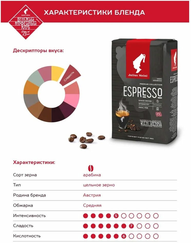 Кофе в зернах Julius Meinl Президент Эспрессо 500г представляет собой купаж отборных зерен Арабики и Робуста средней обжарки. Классический вкус с выдающимся шоколадным послевкусием и ярким бодрящим ароматом позволит вам окунуться в атмосферу знаменитых кафе Вены и познакомит с традициями Венской кофейной культуры. Такой бленд рекомендуется заваривать в турке или кофемашине. Для одной порции вам понадобится 7г кофе на 40мл воды. Также вы можете приготовить его и другими способами: во френч-прессе или в кофеварке.