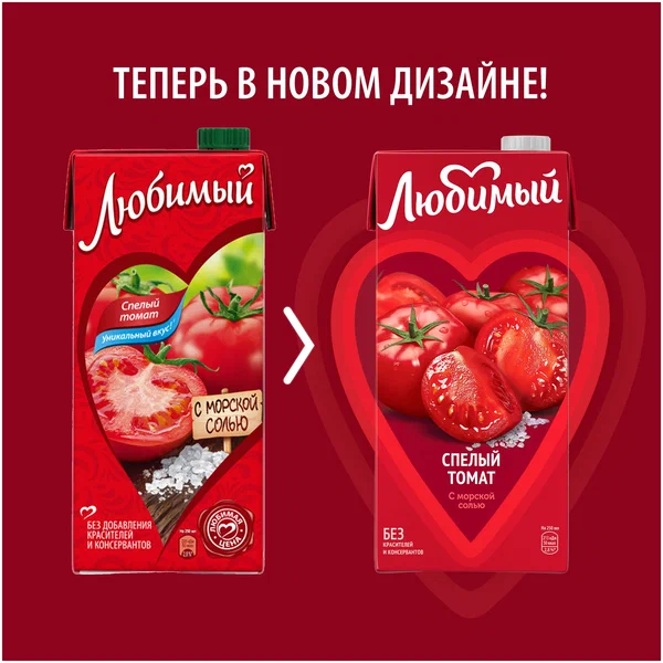 Описание товара:Капелька пикантности - то, что нужно для долгих гармоничных отношений. Удивите свою вторую половинку насыщенным вкусом "Любимый. Спелый томат" с нежной мякотью помидоров и морской солью! Без добавления красителей и консервантов. Насыщенный вкус с нежной мякотью помидоров и морской солью! Для всей семьи. Удивите свою вторую половинку вкусом "Любимый. Спелый томат". Капелька пикантности - то, что нужно для долгих гармоничных отношений. "Любимый" – один из лидеров сокового рынка России. Портфель бренда представляют нектары и соковые напитки на любой вкус высокого качества и по доступной цене. В его широкой ассортиментной линейке – уникальные вкусовые сочетания, такие же гармоничные, как и союз любящей пары! Продукция бренда бережно сохраняет вкус и аромат сочных спелых фруктов и ягод без использования искусственных красителей и консервантов.Состав товара:Томатный сок, сахар (S)** или сахар и глюкозно-фруктозный сироп (G) **, соль морская, регулятор кислотности – лимонная кислота, вода.