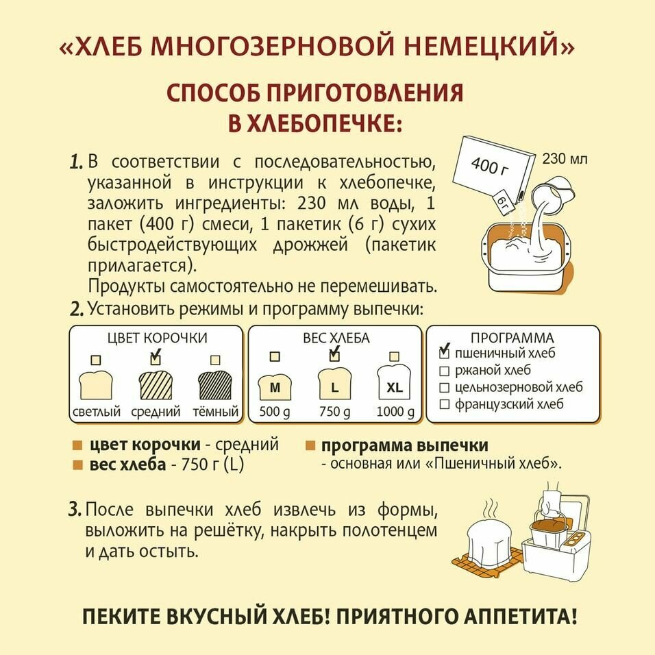 Сервис сравнения цен СкидкаГИД предлагает сравнить цены на товар «Смесь для выпечки ХлебБург Хлеб Немецкий многозерновой 400г Петербургский МК»