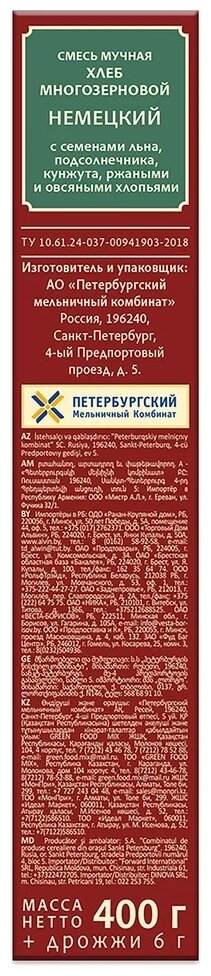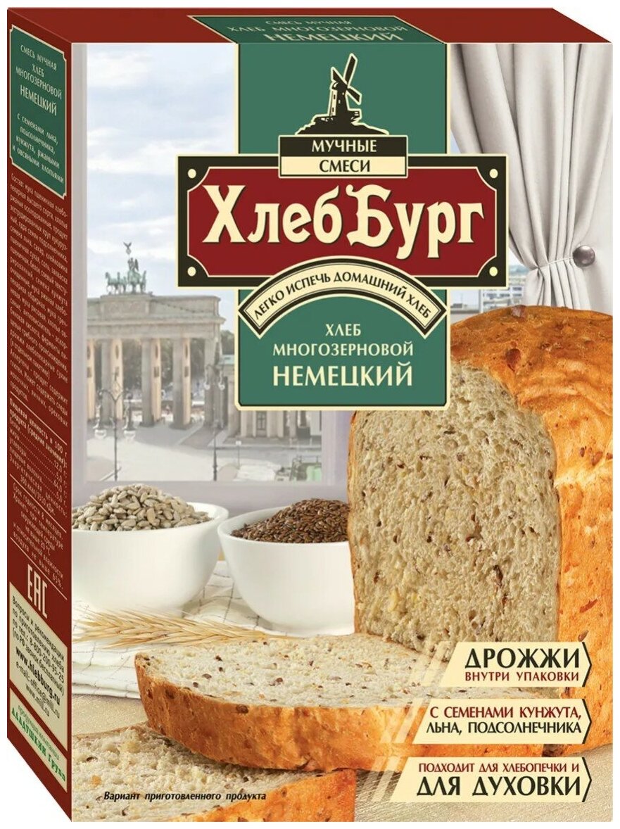Смесь для выпечки ХлебБург Хлеб Немецкий многозерновой 400г Петербургский МК