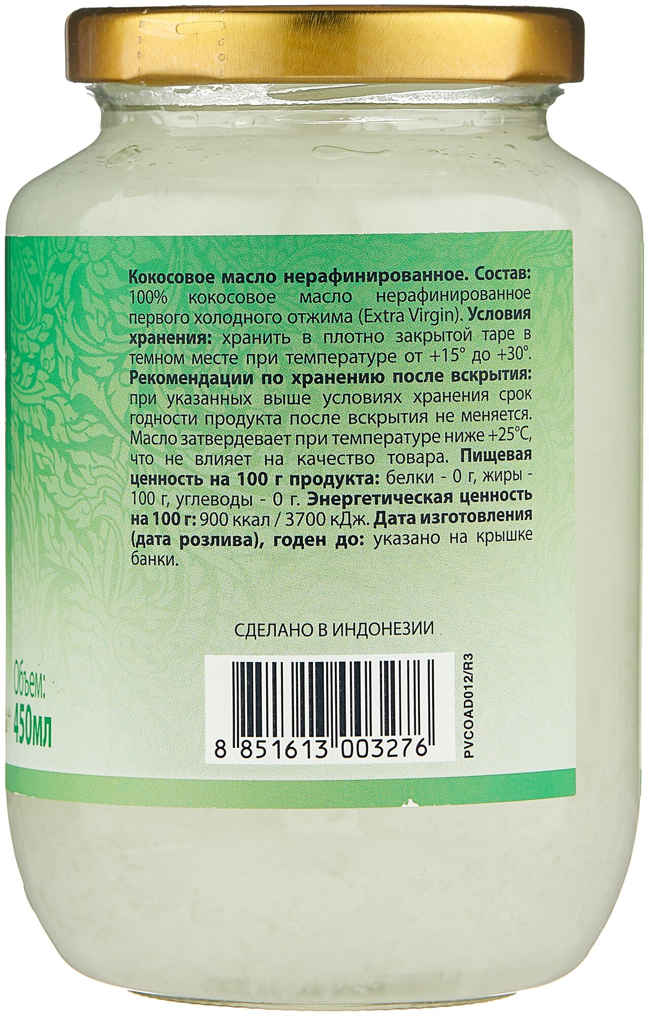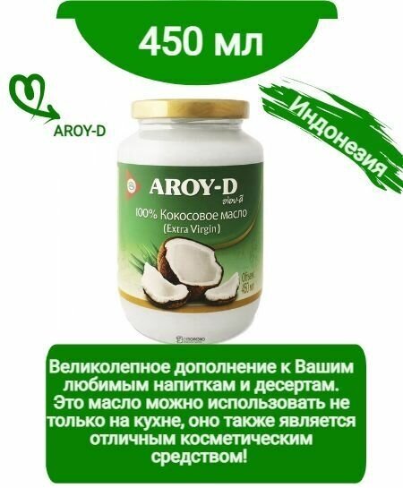 Описание товара:Кокосовое масло Extra Virgin AROY-D - отличная альтернатива сливочному или растительному маслу. Великолепное дополнение к Вашим любимым напиткам и десертам. Это масло можно использовать не только на кухне, оно также является отличным косметическим средством! Подходит для снятия макияжа, в качестве средства для ухода за волосами или увлажняющего средства для кожи.Состав товара:100% кокосовое масло первого холодного отжима.Меры предосторожности:Противопоказано людям с индивидуальной непереносимостью продукта.