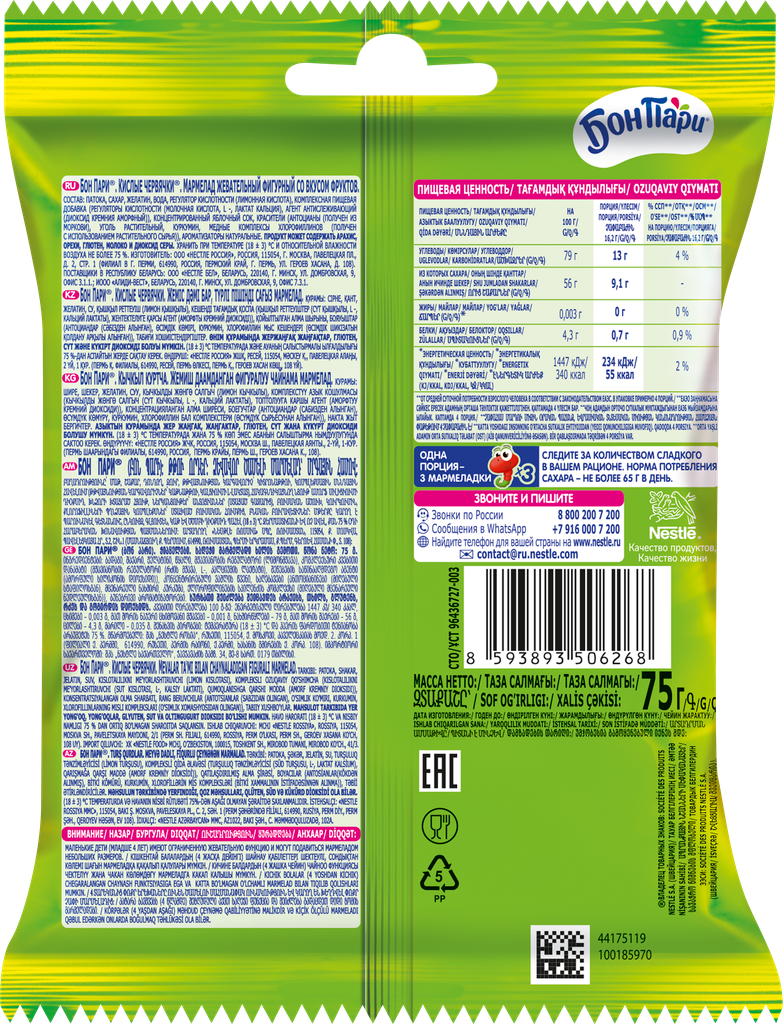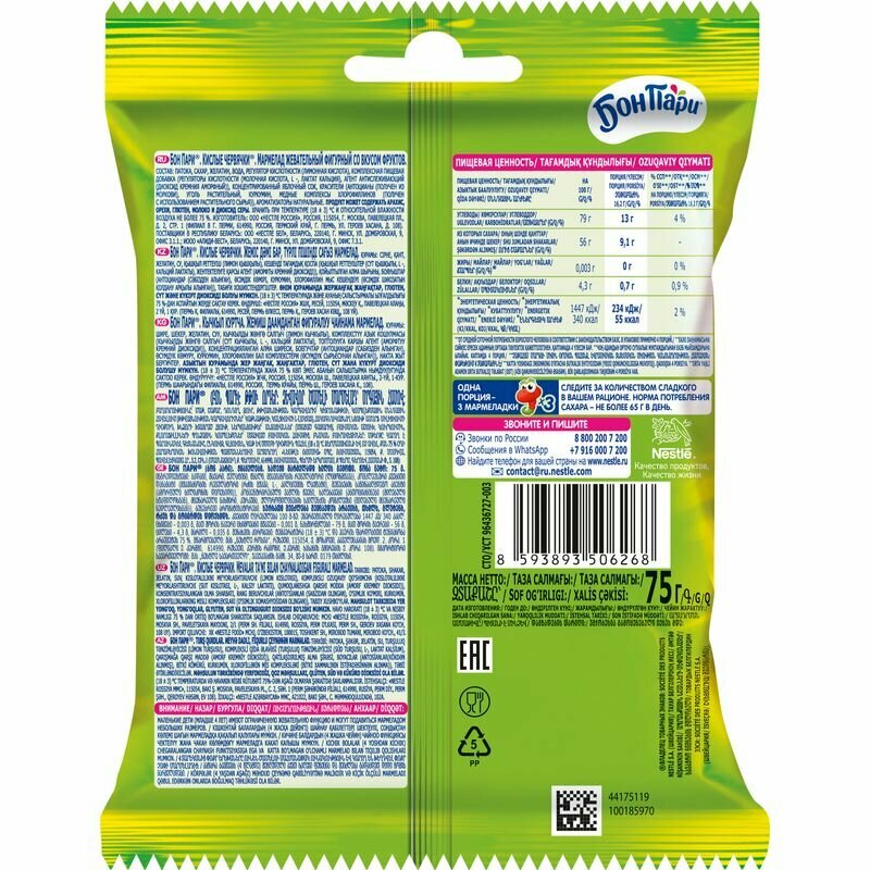 - Распаковка и Обзор Еды Мармелад Жевательный "БОН ПАРИ" [КИСЛЫЕ ЧЕРВЯЧКИ] со Вкусом Фруктов, 75 г.