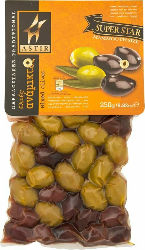 Оливки Astir Ассорти традиционное с косточкой 250г Zacharias Drakopoulos