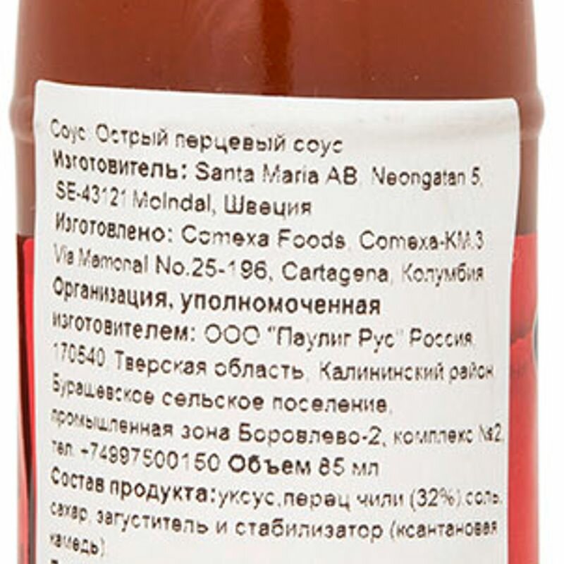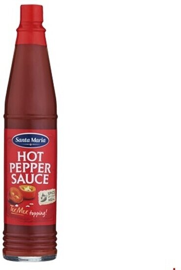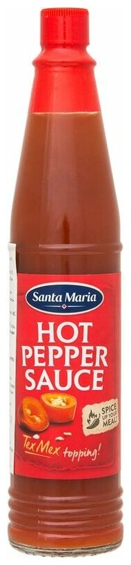 Santa Maria Tex Mex Hot Pepper Sauce 85ml — соус из острого перца — это острый соус со вкусом чили. Он придает жару и благодаря своему острому вкусу является отличным дополнением ко всем мексиканским блюдам.Santa Maria Hot Pepper Sauce — соус на основе красного острого перца чили. Благодаря своей консистенции соус легко растворяется в блюде. Удобно дозировать по каплям. Соус можно добавлять в любое блюдо в процессе приготовления, если нужно придать жгучесть и ярко выраженный вкус и аромат мексиканской кухни. Подходит для мяса, курицы и рыбы. Незаменимый ингредиент коктейля «Кровавая Мэри».Самостоятельный соус. Соус добавляется в любое блюдо, если нужно придать жгучесть, ярко выраженный вкус и аромат мексиканской кухни. Подходит для мяса, курицы, рыбы