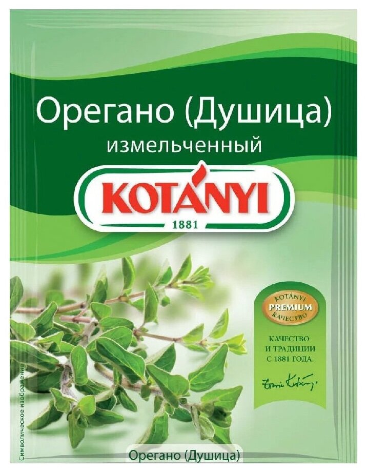Описание товара:Орегано обладает пряным, чуть терпким и горьковатым вкусом. Это традиционный ингредиент средиземноморской кухни. Насыщенный эфирными маслами орегано KOTÁNYI придает блюдам насыщенный аромат и пряный вкус.Состав товара:Орегано.Меры предосторожности:Хранить в сухом месте плотно закрытым. Может содержать следы глютеносодержащих злаков, яиц, сои, сельдерея, кунжута, орехов, горчицы, молока.