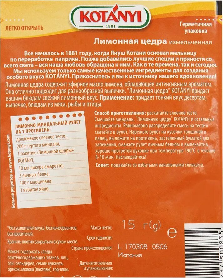 Сервис сравнения цен СкидкаГИД предлагает сравнить цены на товар «Цедра Kotanyi Лимонная измельченная 15г»