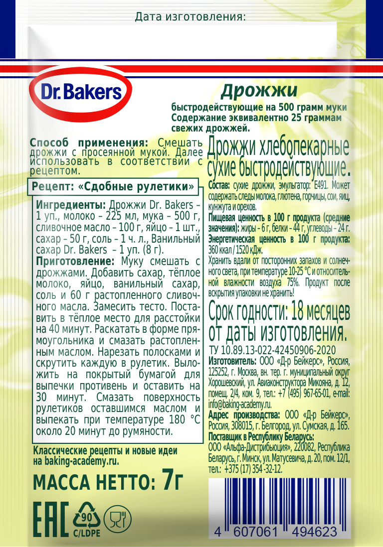 | Производитель | ООО "Д-р Бейкерс" |
