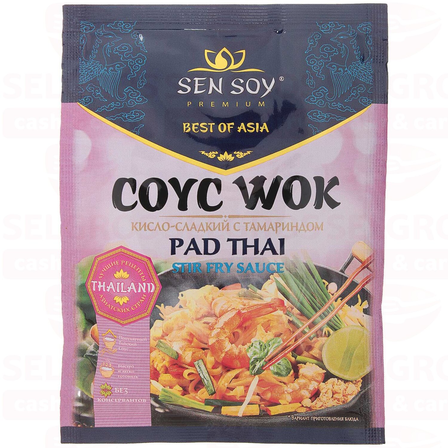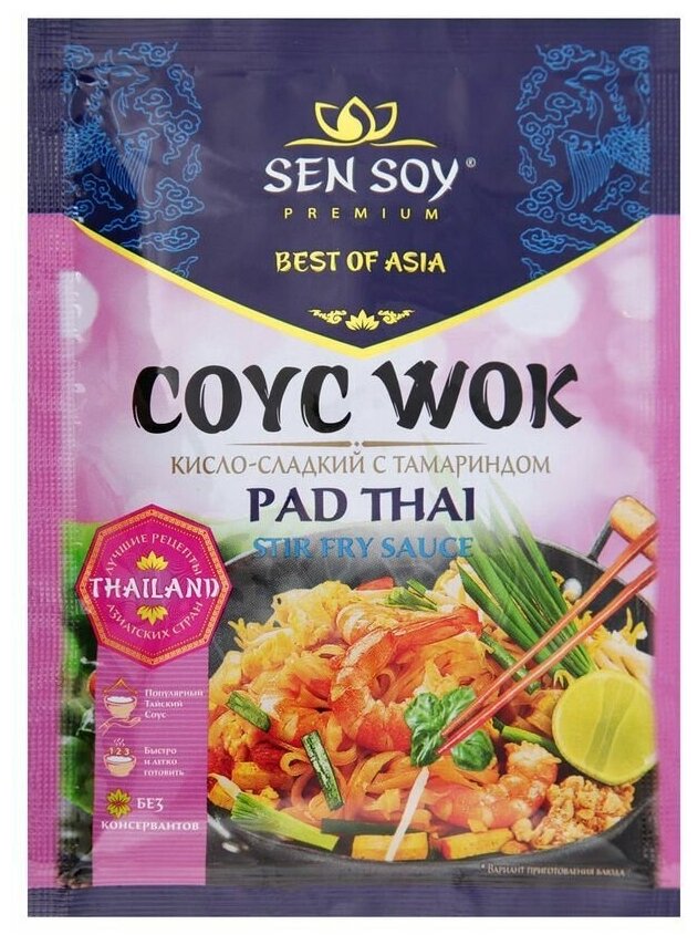 Пад Тхай традиционно готовится из рисовой лапши с курицей, морепродуктами или овощами с добавлением сложного и многогранного соуса из аутентичных тайских ингредиентов. Соус Sen Soy Pad Thai Sauce 80г столовый для приготовления создан по классической рецептуре и сочетает в себе все обязательные вкусы и ароматы (тут есть тамаринд, ананасы, устричный и соевый соусы, грибы). А главное, в нем собраны все специи, необходимые для приготовления одного из самых популярных блюд пряной уличной тайской кухни.
