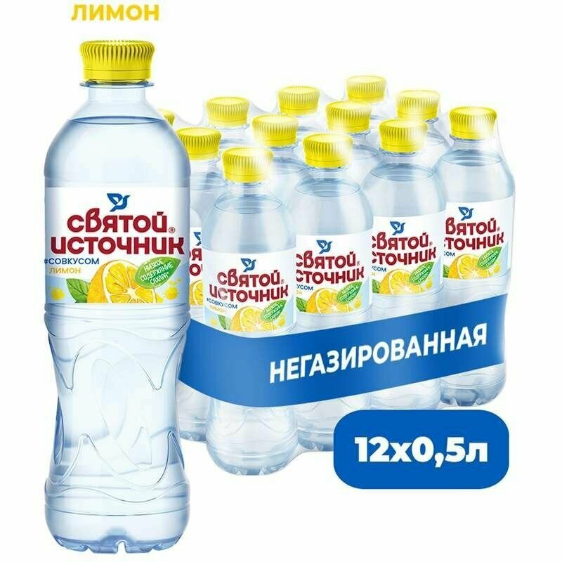 Напиток Святой Источник Природная вода+Лимон 500мл - это освежающий коктейль из чистой питьевой воды и лимонного сока с добавлением фруктового сахара. В его основе - вода Святой Источник, которая рождается в артезианских скважинах юрско-четвертичного комплекса на глубине до 50 метров. Проходя сквозь геопласты, она подвергается естественной фильтрации и обогащается микроэлементами, а дальнейшая щадящая обработка позволяет сохранить в ней природные соли и минералы (кальций, калий, магний). Замените привычную газировку этим напитком, и вы принесете огромную пользу своему здоровью! Удобная эргономичная бутылка с крышкой спорт-лок.