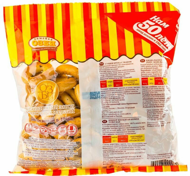 На сегодняшний день товар «Сушки Семейка Озби Кроха с маком 200г Останкинский завод бараночных изделий» можно купить с кешбеком в 1 магазине: Vprok (Перекресток)