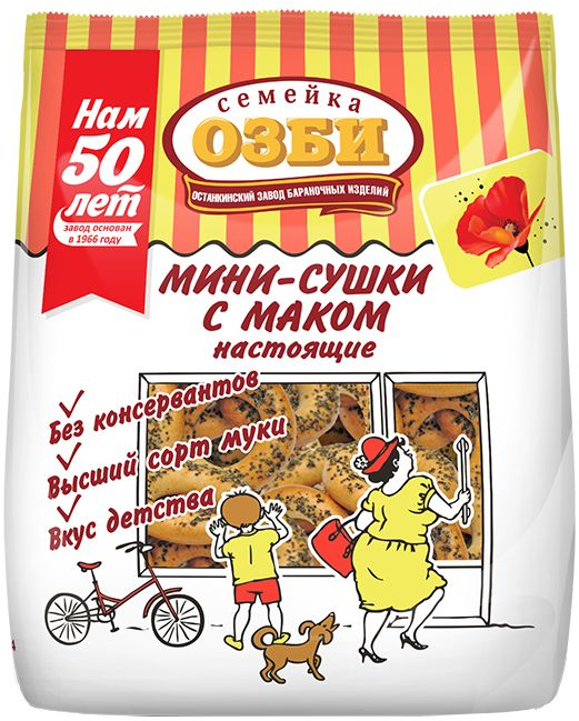 Сушки Семейка Озби Кроха с маком 200г Останкинский завод бараночных изделий