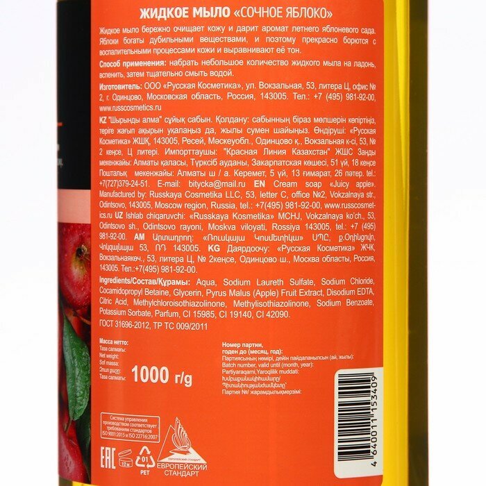 | Состав | Aqua; Sodium Laureth Sulfate; Sodium Chloride; Cocamidopropyl Betaine; Glycerin; Fragaria Vesca (Strawberry) Fruit Extract; Rubus Chamaemorus Seed Extract; Rubus Fruticosus (Blackberry) Juice; Disodium EDTA; Citric Acid; Sodium Benzoate; Potassium Sorbate; Methylchloroisothiazolinone; Methylisothiazolinone; Parfum; Limonene; СI 14720; СI 19140; СI 42090 |