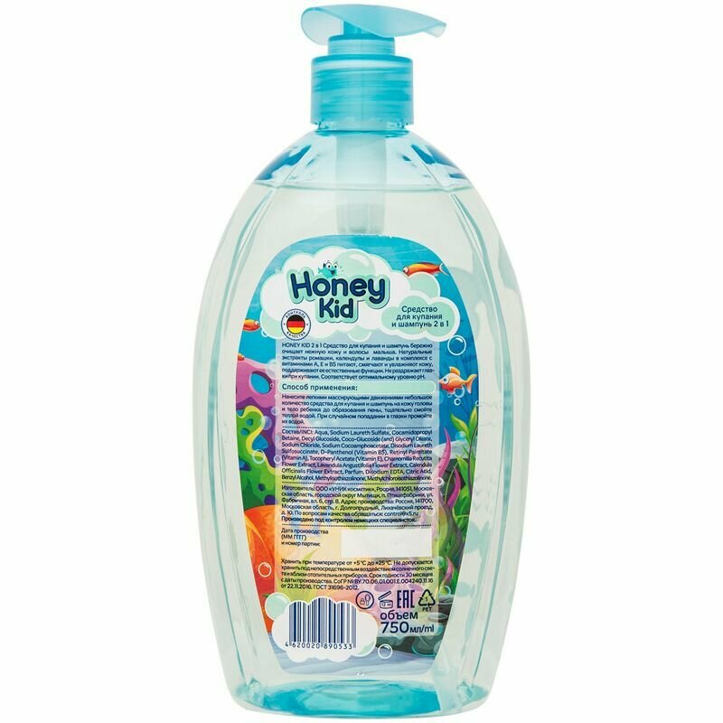 Средство для купания и шампунь Honey Kid 2 в 1 750мл УНИК КОСМЕТИК