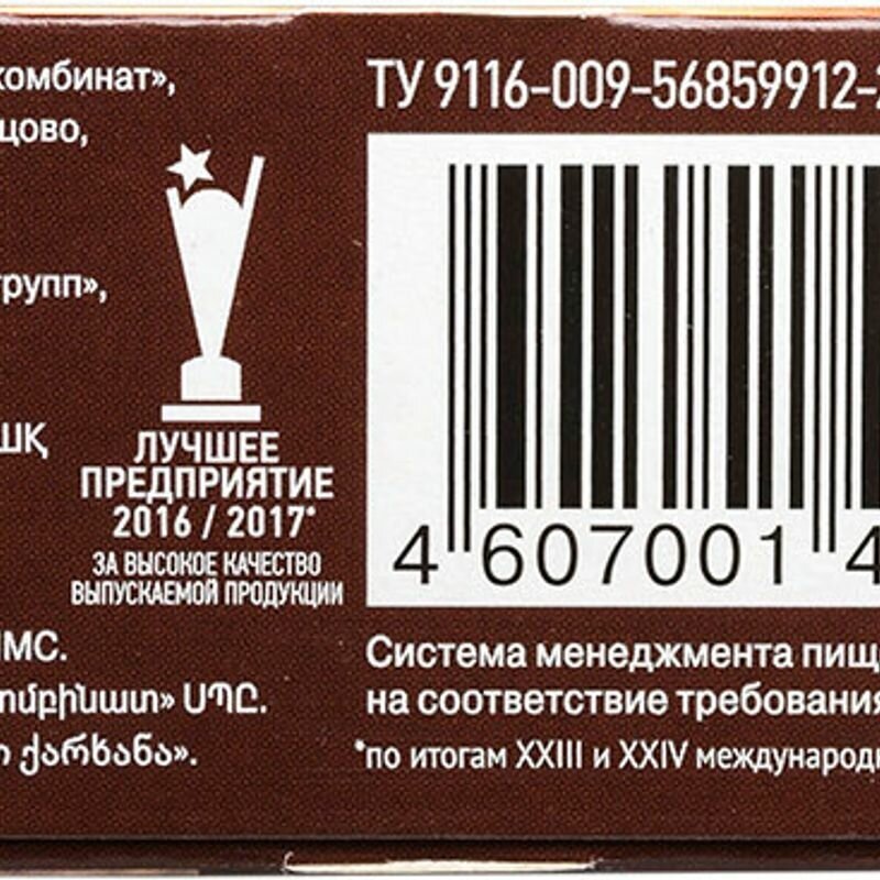 | Состав | мука пшеничная в/с, глюкозный сироп, сахар, маргарин (рафинированные дезодорированные масла в натуральном и модифицированном виде (подсолнечное масло, пальмовое масло), вода, эмульгаторы (е471, е475), соль, ароматизатор, краситель е160а, регулятор кислотности лимонная кислота); заменитель масла какао (масло растительное, эмульгаторы (е492, е322)), арахис жареный дробленый, мальтодекстрин, заменитель молочного жира (рафинированные дезодорированные масла в натуральном и модифицированном виде (пальмовое масло, подсолнечное масло), эмульгаторы (е471, е322), антиокислители (е320, е321)), вода, какао-порошок, крахмал пшеничный, глюкоза, молоко сухое обезжиренное, продукты яичные,влагоудерживающий агент (глицерин), эмульгатор е322, соль, ароматизаторы "ванилин", "тоффи", консервант сорбиновая кислота, уплотнитель е509, дрожжи хлебопекарные, регулятор кислотности гидрокарбонат натрия. |