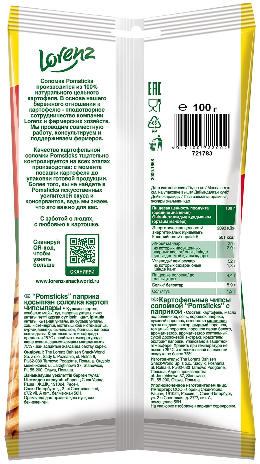 - Lorenz Pomsticks - картофельные чипсы с паприкой