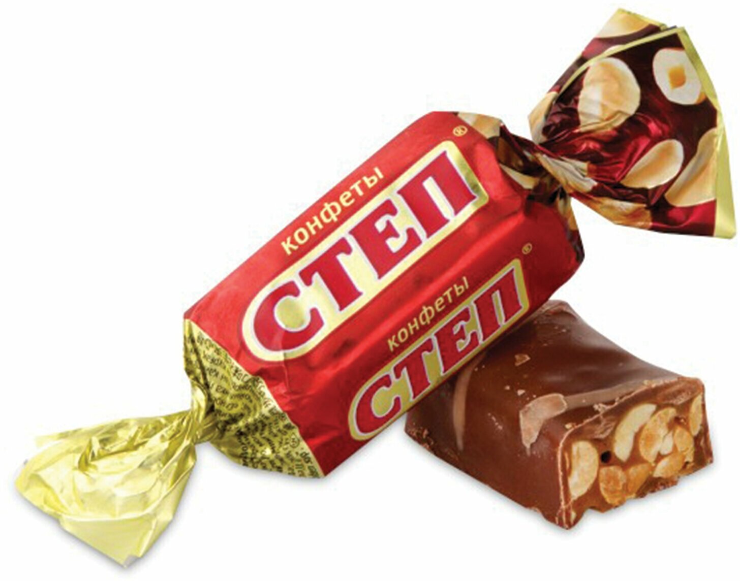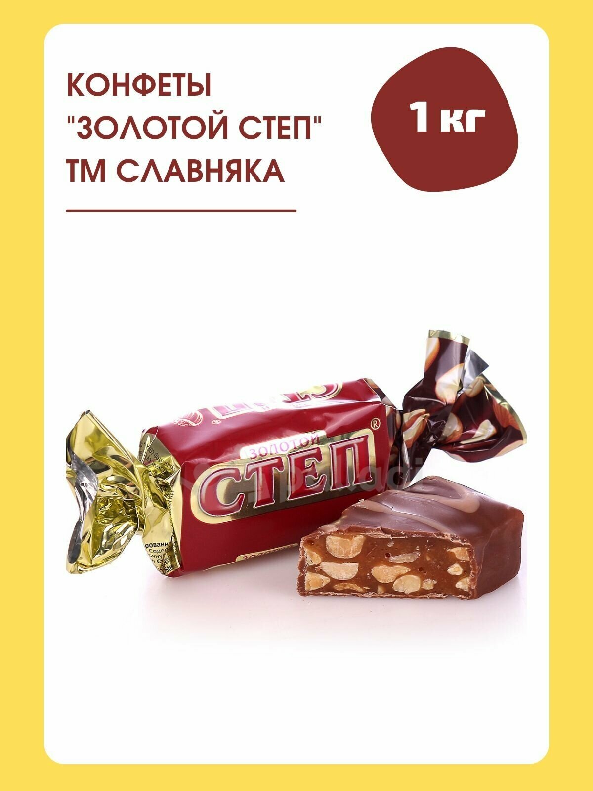 Конфеты шоколадные Степ Золотой, с орехом 192гКонфеты на основе мягкой карамели с арахисом, покрытые великолепной молочной глазурью. Конфеты "Золотой степ " знакомое и любимое нашими соотечественниками лакомство от кондитерской фабрики "Славянка " - были первым аналогом заграничных ореховых батончиков на рынке. Цельный арахис в мягкой карамельной основе покрывает глазурь из великолепного молочного шоколада. Такое угощение придется очень кстати к любому чаепитию и приходу гостей. Состав: арахис, патока, сахар, молоко цельное сгущенное с сахаром (сахара: сахароза, лактоза, молоко цельное), эквивалент какао-масла, жир растительный (масла растительные, антиокислители: Е319, кислота лимонная), какао-тертое, сыворотка молочная сухая, молоко сухое обезжиренное, заменитель масла какао, эмульгаторы (лецитин, Е476), влагоудерживающий агент Е420, соль, ароматизаторы. Пищевая ценность в 100 г продукта: белки - 10,3 г, жиры - 27,5 г, углеводы - 51,2 г. Энергетическая ценность в 100 г продукта: 499 ккал. Хранить при температуре от +15 градусов Цельсия до +21 градусов Цельсия и относительной влажности воздуха не более 75%. Не подвергать воздействию прямого солнечного света. Хранить в помещениях, не зараженных вредителями хлебных запасов. ТУ 9124-013-00340546-2003.