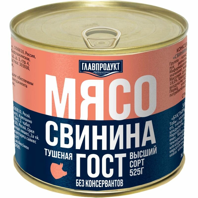 - Главпродукт говядина и свинина тушеная высший сорт ГОСТ Орловская.