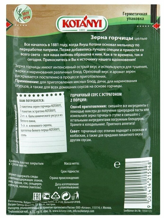 На сегодняшний день товар «Специя Kotanyi Зерна горчицы целые 30г» можно купить с кешбеком в 1 магазине: Яндекс Еда