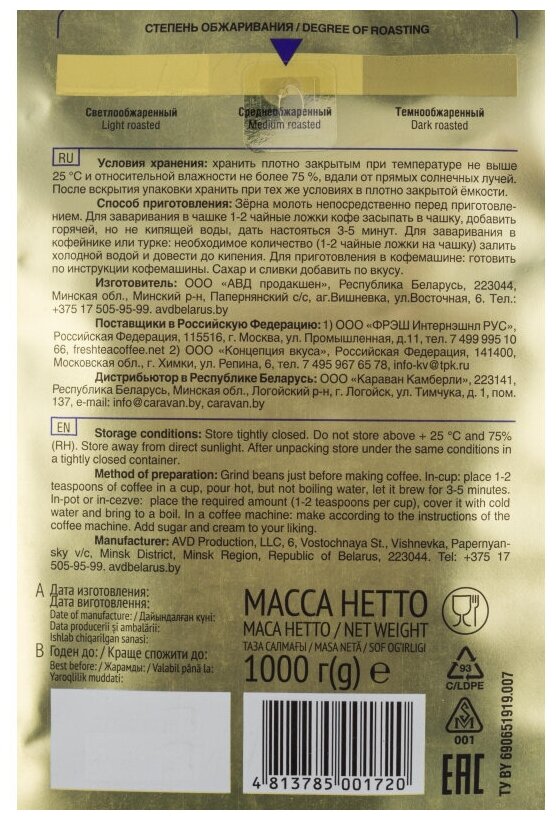 Сервис сравнения цен СкидкаГИД предлагает сравнить цены на товар «Кофе в зернах Barista Pro Crema 1кг AVD Production»