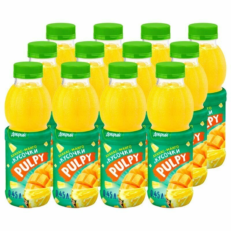 Напиток сокосодержащий Добрый Палпи Ананас-манго 450мл - это освежающий коктейль из ананасового сока, пюре манго, артезианской воды и сочных палпинок - натуральной фруктовой мякоти. Чтобы наслаждаться его богатым экзотическим вкусом и палпинками в каждом глотке, перед употреблением встряхните бутылку. Продукция бренда дважды становилась обладателем премии "Товар года" (в 2015 и в 2016 году). Не содержит консервантов и подходит для питания детей старше 3 лет. Упакован в стилизованную под кожуру апельсина пластиковую бутылку с винтовой крышкой.