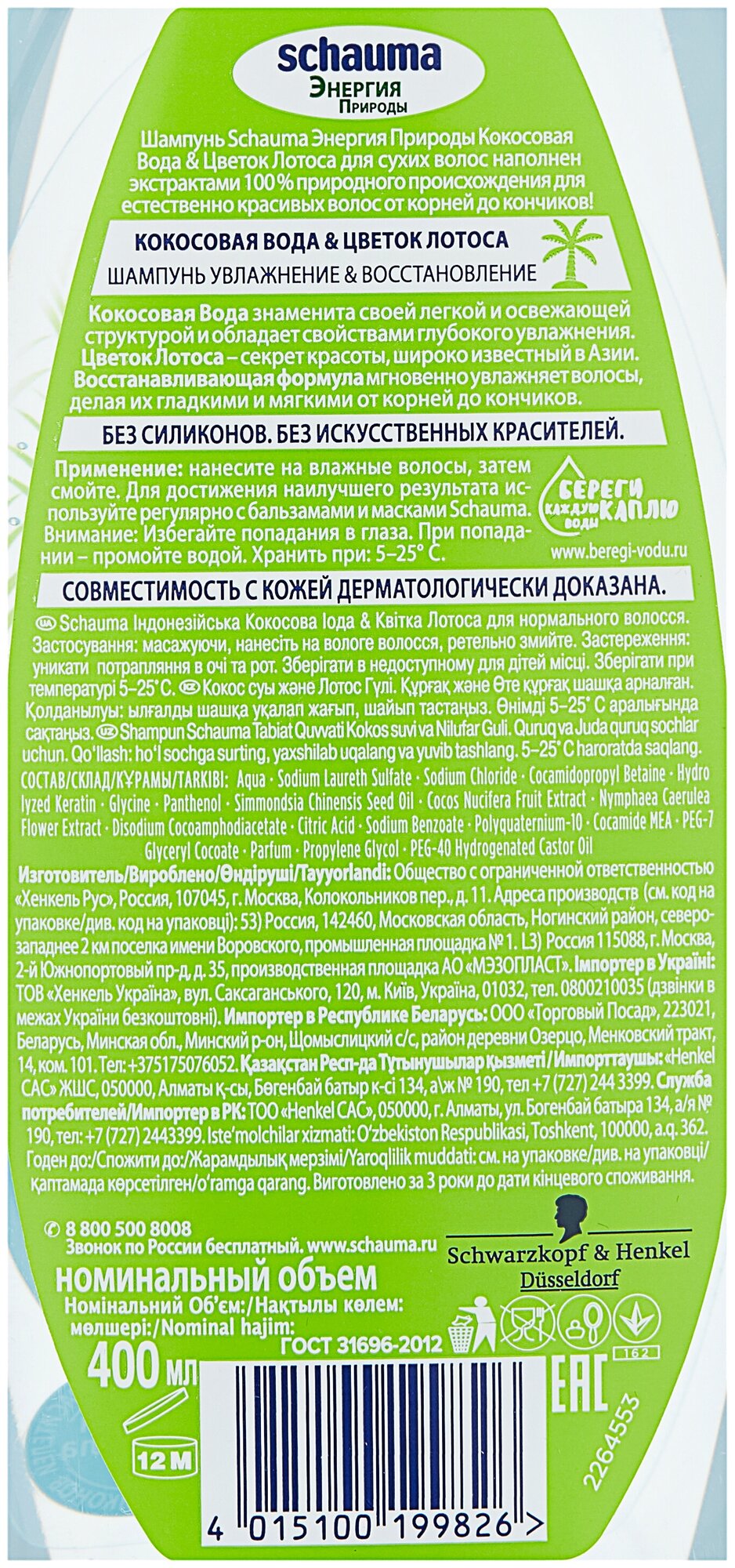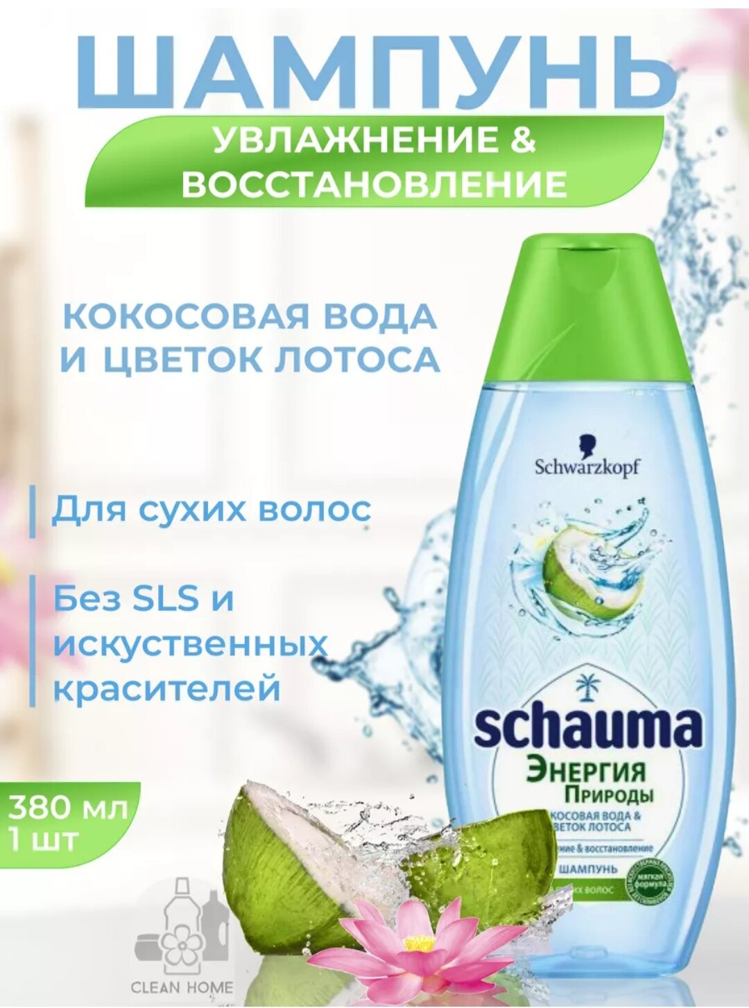 Сервис сравнения цен СкидкаГИД предлагает сравнить цены на товар «Шампунь для волос Schauma Кокосовая вода Цветок лотоса 400мл Henkel»