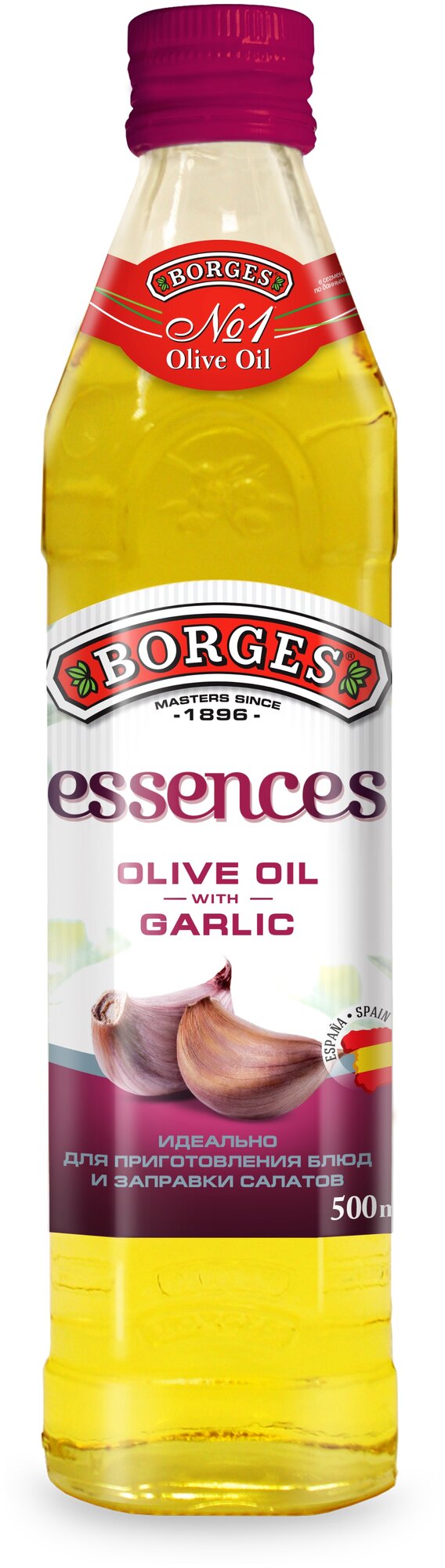 Масло оливковое Borges Essences рафинированное с ароматом чеснока 500мл - смесь высококачественного испанского оливкового масла рафинированного и нерафинированного первого холодного отжима (Extra Virgin) с пряным чесночным вкусом и запахом. Оно сделает вкус ваших блюд более ярким и пикантным. Отлично подходит для заправки салатов, приготовления соусов и маринадов, блюд из мяса и птицы, овощей на гриле, пиццы, пасты, картофеля, кростини. Российская Академия Медицинских наук рекомендует это масло как диетический продукт. Благодаря содержанию мононенасыщенных жиров снижает риск сердечных заболеваний.