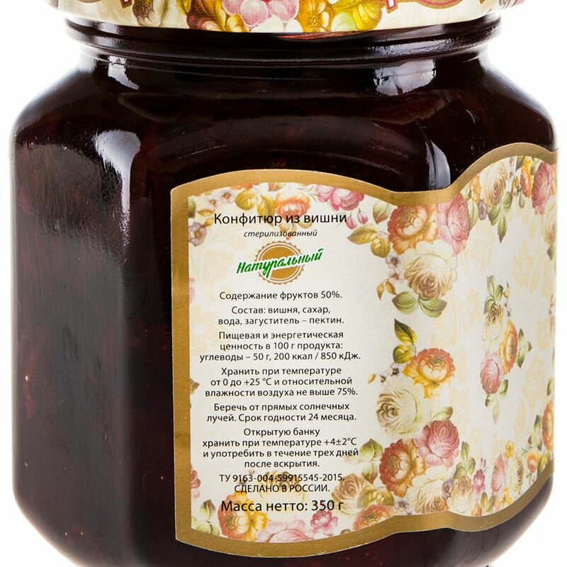 | Состав | Вишня, сахар, вода, загуститель - пектин |