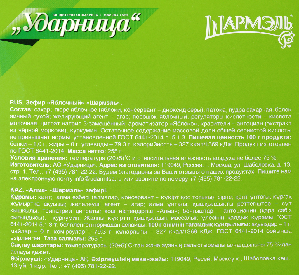 Зефир Шармэль Яблочный 255г Ударница
