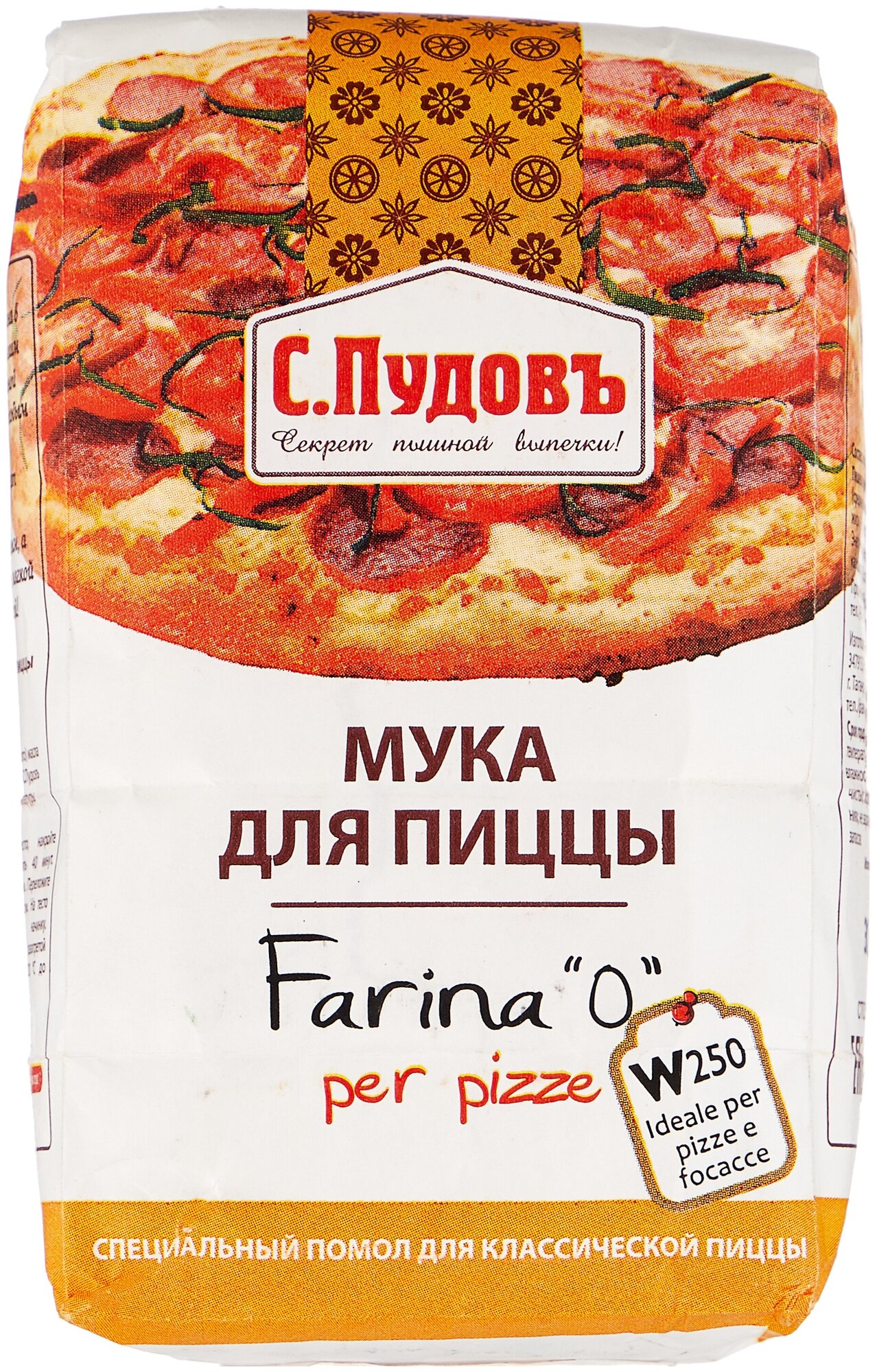 Пшеничная мука для пиццы С.Пудовъ полностью соответствует всем критериям, имеет показатель силы W250, благодаря чему пицца получается мягкой с нежной, хрустящей корочкой.