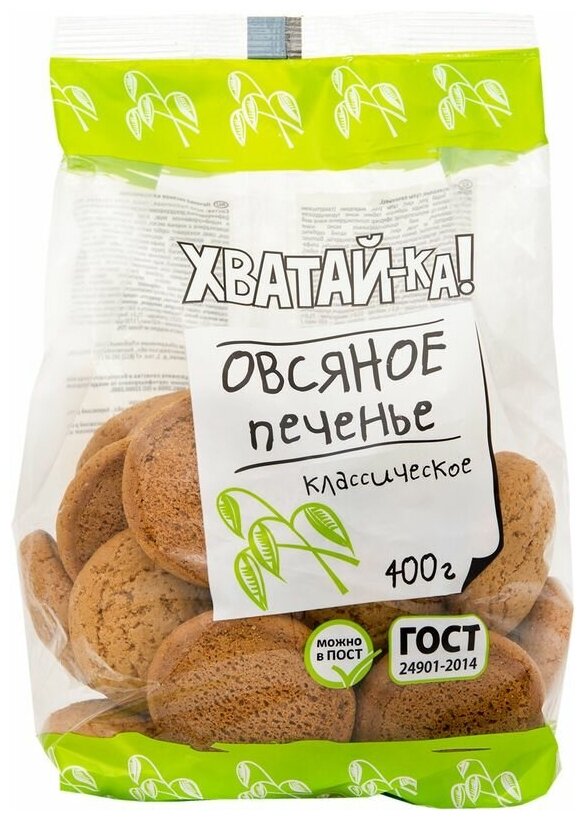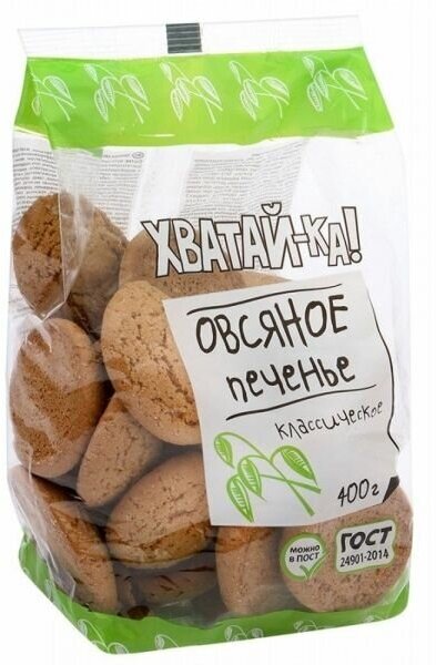 Печенье Хватай-ка Овсяное Классическое 400г Кондитерское объединение Любимый Край