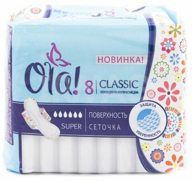 Покупаю всегда Ola! Classic Wings. Впитывают отлично. Несмотря на пухлость самой прокладки, они практически не заметны под одеждой. Фиксация на белье надежная, как у липучки, так и у крылышек. Покупала, чтобы носить и днем, и ночью, числа капель хватает, длины тоже. Поверхность сеточка мягкая, не раздражает кожу, при носке ничего не краснеет. С ними время критических дней проходит без лишнего дискомфорта.