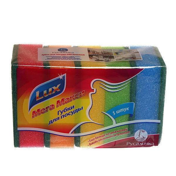 Губка для посуды Русалочка Мега Макси Люкс (5 шт) Размер губки 11 * 7,5 * 4 см.