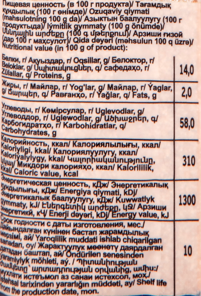 | Энергетическая ценность (ккал на 100 г) | 307 |