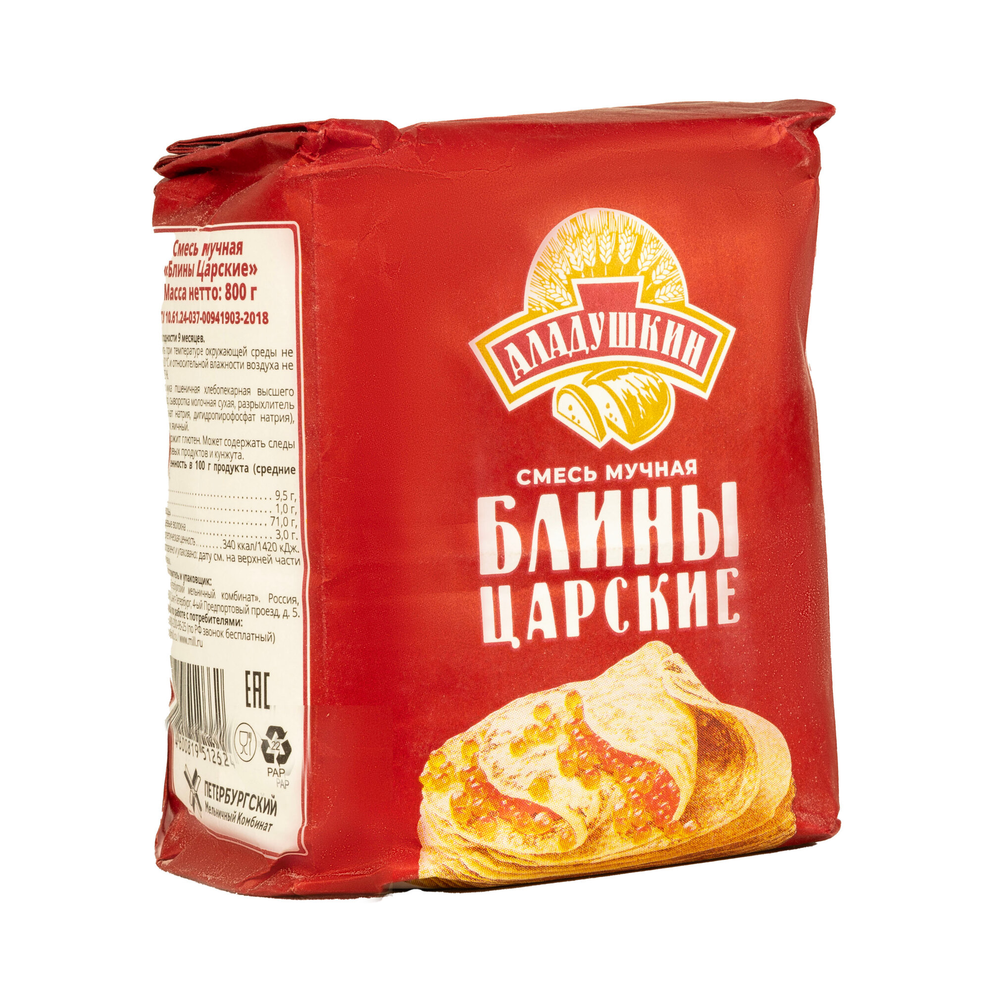 Смесь для выпечки мучная Аладушкин Блины Царские 800г Петербургский МК