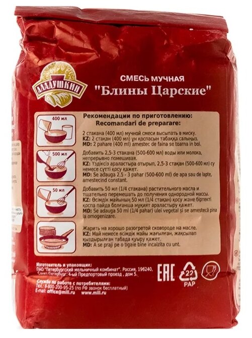 | Изготовитель | АО «Петербургский мельничный комбинат» |