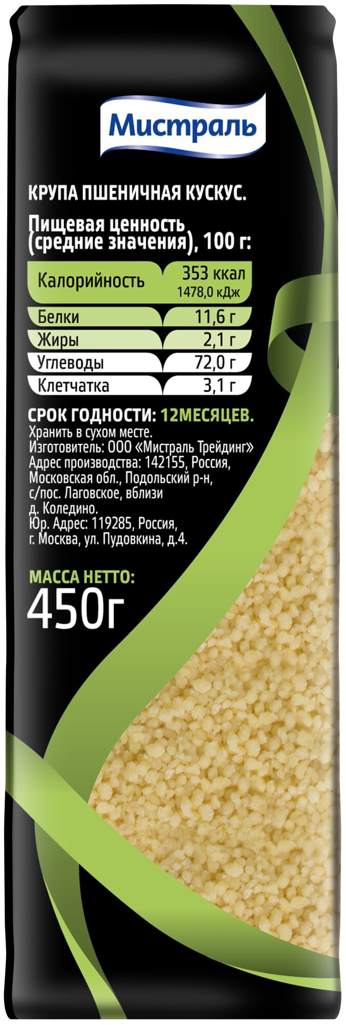 | Состав товара | Крупа пшеничная кускус. ТУ 9294-003-99621687-10 |