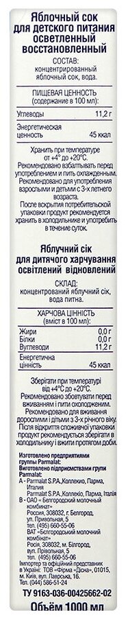 | Состав | яблочный сок. изготовлен из концентрированного сока. |