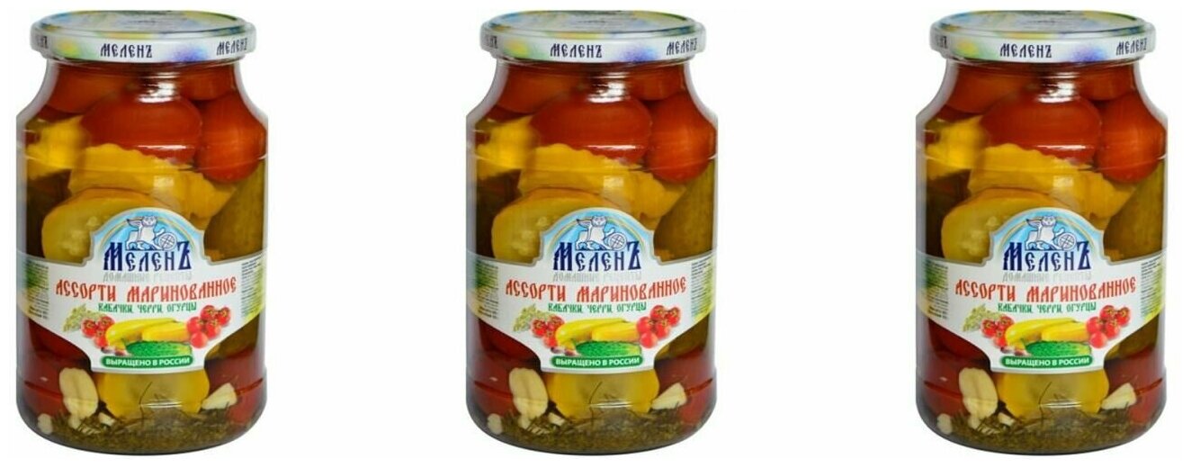 Сервис сравнения цен СкидкаГИД предлагает сравнить цены на товар «Ассорти Меленъ овощное Кабачки черри огурцы 900г Меленковский КЗ»