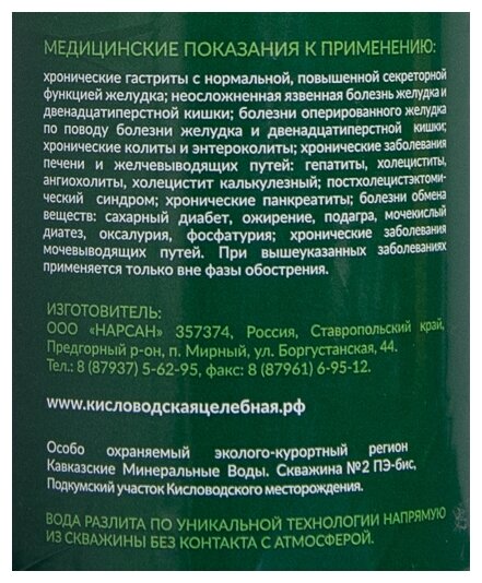 Вода Кисловодская Целебная минеральная лечебно-столовая газированная 1л Нарсан