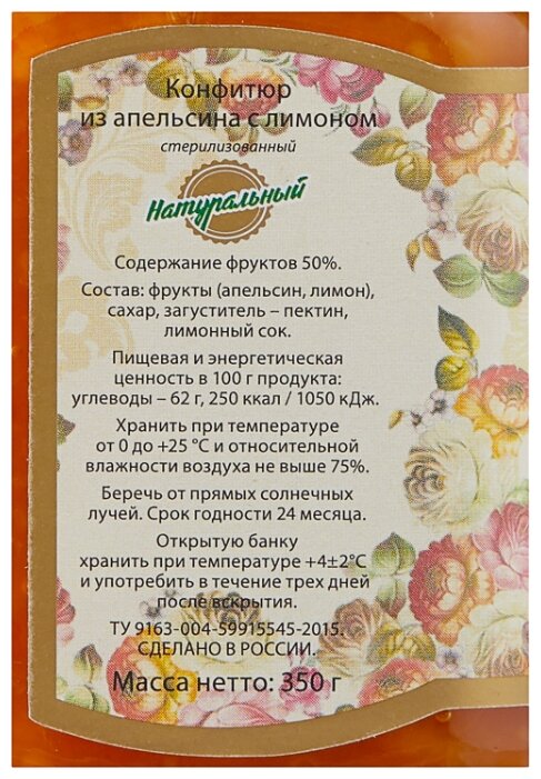 Конфитюр Ратибор из апельсина с лимоном 350г