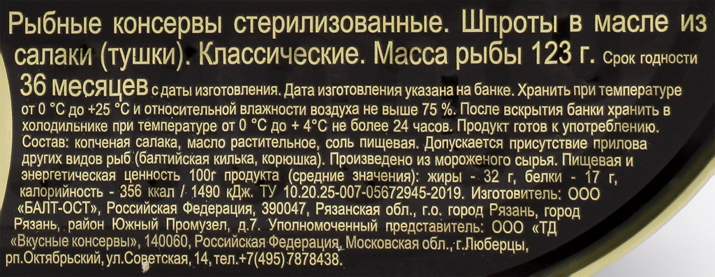| Состав | копченая салака, подсолнечное масло, соль пищевая |